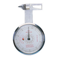 Economic version of the item M1357XL. Made of stainless steel, mm/inch switch. Zero setting. Runs by one 1,5V cell battery.